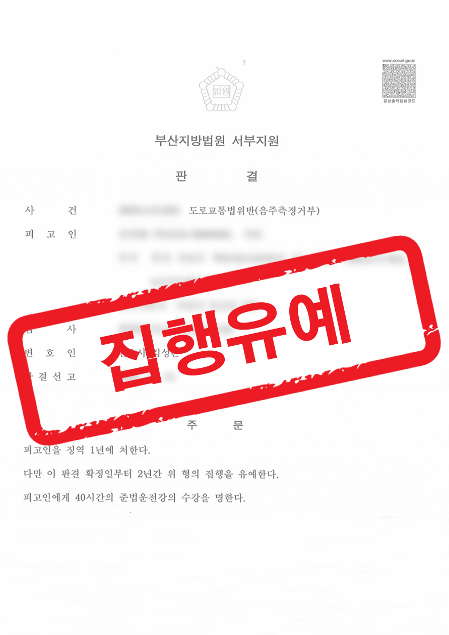 [부산음주운전변호사] 음주운전 전력이 있었던 음주측정거부 사건, 집행유예로 마무리된 성공사례